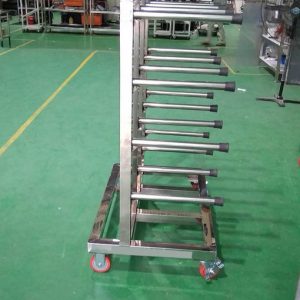 Xe đẩy cuộn ngyên vật liệu công nghiệp có nhiều tính năng ưu việt vì cấu tạo cũng như tính năng sử dụng . Xe được làm bằng inox chắc chắn có các thanh để cuộn nguyên vật liệu , giúp cho công nhân dễ dàng di chuyển những cuộn nguyên vật liệu có khối lượng nặng mà không cần nhờ đến sự trợ giúp của xe nâng hàng.